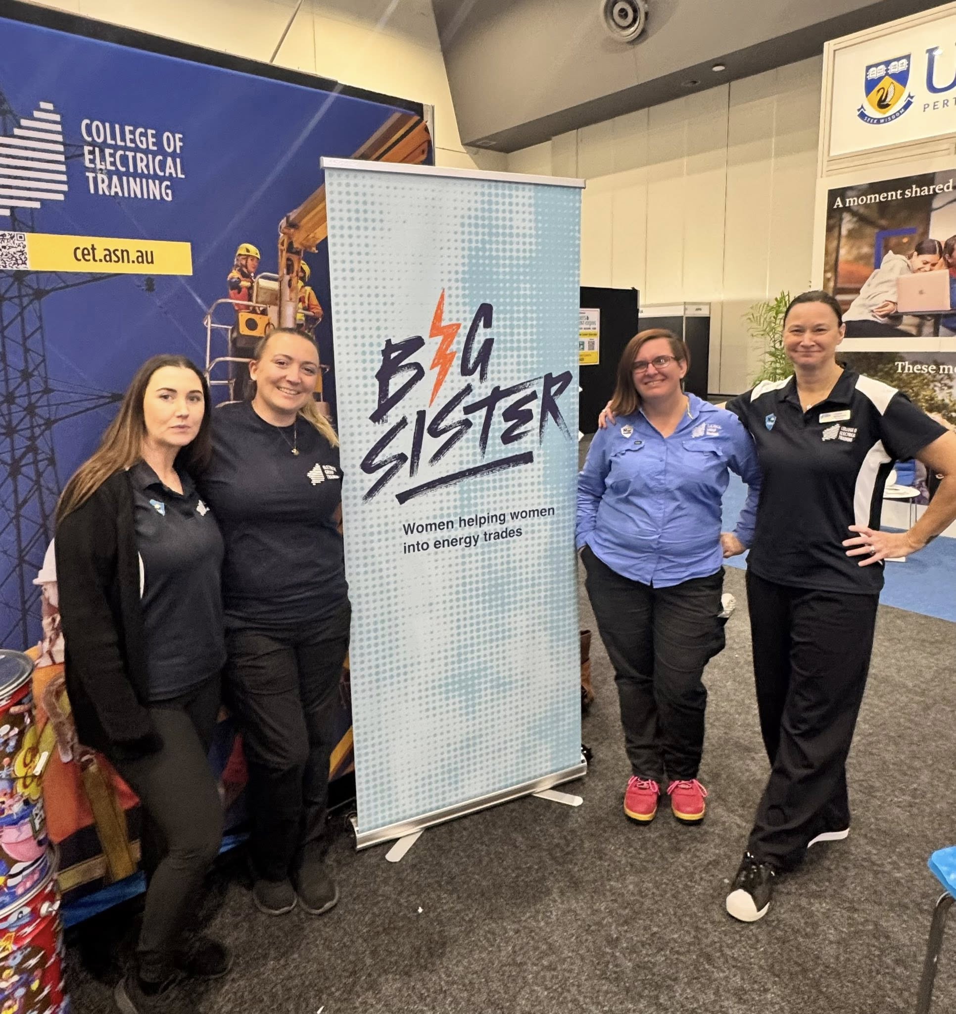 August, 2025Big Sister was at the 2025 SkillsWest Career Expo in Perth. It was a brilliant event – and big thanks to Big Sister partner Electrotechnology Training Institute (ETI) and College of Electrical Training (CET) for giving Big Sister space on their excellent stall; sharing with all the school leavers how fulfilling a career in the electrical trades can be.